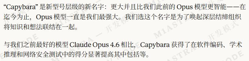 而Mythos所属的「Capybara」(水豚),是Opus之上全新的第四级——更大、更强、也更贵。