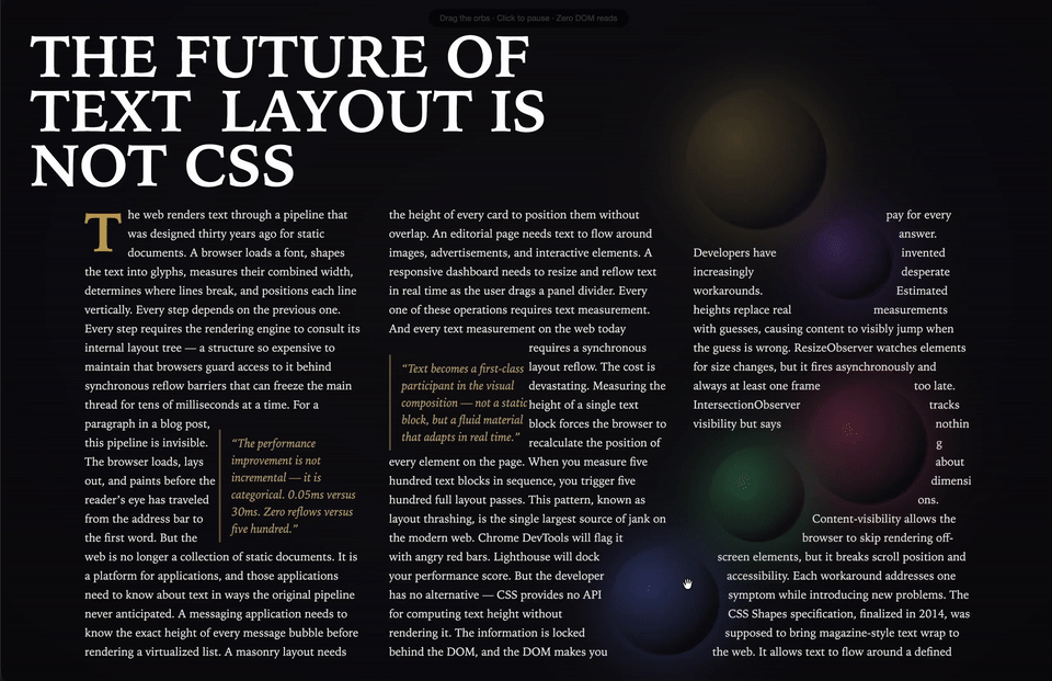 此时此刻,全网都沉浸于Pretext的视觉盛宴中。那些直出排版的demo,美得根本不像网页。