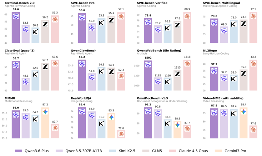 Qwen3.6-Plus在代码、智能体、推理、原生多模态等能力上整体性能大幅增强,在智能体编程SWE-bench系列评测、真实世界智能体任务Claw-Eval等权威评测中,千问3.6编程表现超越2倍乃至3倍参数量的GLM-5、Kimi-K2.5等模型,成为当下编程能力最强的国产模型,接近全球最强编程模型 Claude 系列。