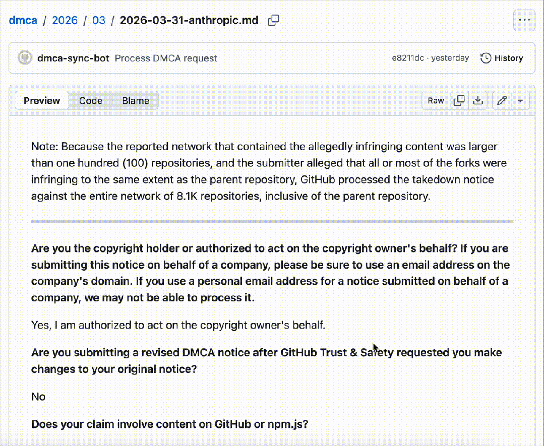 地址:https://github.com/github/dmca/blob/master/2026/03/2026-03-31-anthropic.md