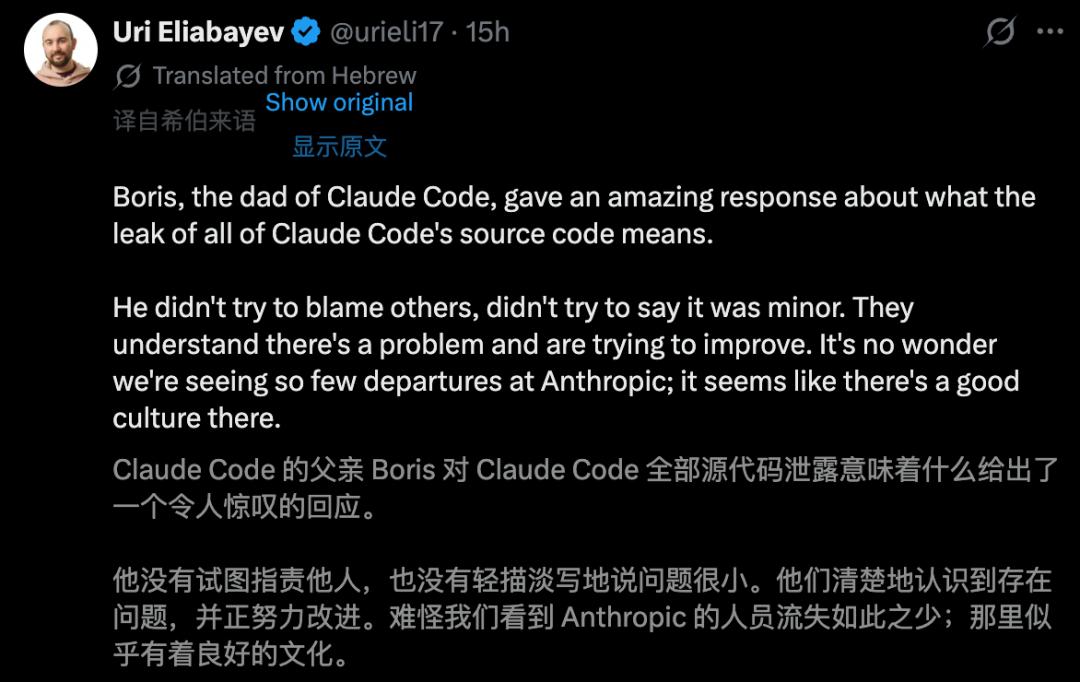 话又说回来,这场突如其来的巨大事故,才真正折射出Anthropic面临危机时的真实底色和文化。