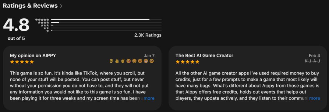高可玩性的内容天然具备外部传播势能,不少用户在Aippy的留言区评论,「It’s so fun to see what other people do!」「I made so many games in just a few minutes」。