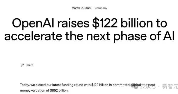 【新智元导读】Anthropic源代码惊天泄露刚刚刷屏,OpenAI就来抢头版了。就在刚刚,OpenAI宣布拿下1220亿美元融资,投后估值飙至8520亿!而且,首次向散户敞开大门。