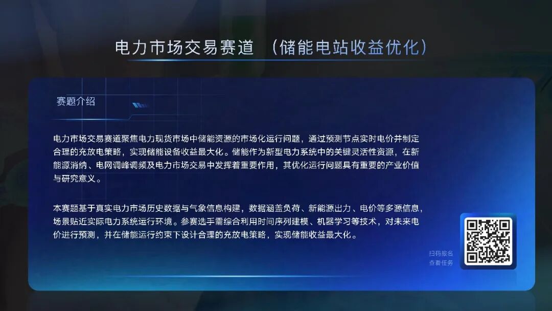 四大算法赛道分别聚焦电力市场交易、可控核聚变、生物结构预测与古文字识别四个方向,依托真实数据集与复杂业务环境设计,强调从问题理解到模型构建再到策略落地的全流程能力。